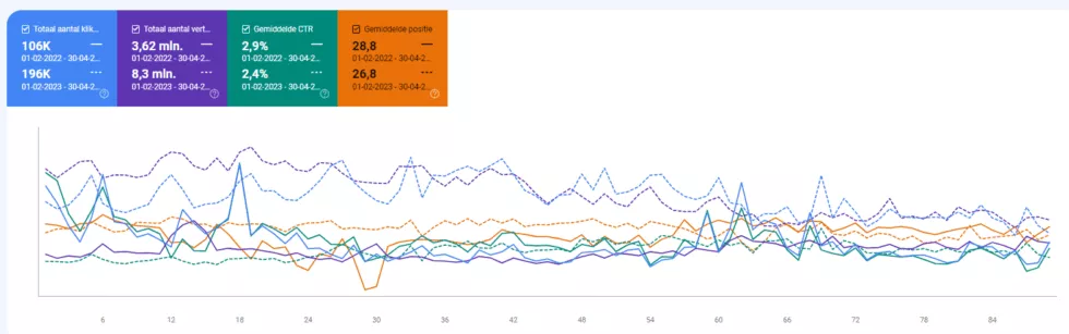 We have been working together for a year with the largest vintage webshop in the Netherlands, namely Whoppah.com. We see an explosive growth in organic traffic every month due to intensive link building campaigns on more than 1000+ keywords. Since May 2022, we have started qualitative link building campaigns for a large number of commercial keywords such as: vintage furniture (3,000 searches per month), Chaise Longue (13,000 searches), vintage (30,000) and design furniture (2,300 search volume). We also focused on all kinds of brands + types of furniture, such as Artifort, Leolux, Pastoe, Rolf Benz, Fest, Gelderland and so on. In one year, the number of organic visitors has grown from 98,000 visitors per month to 193,000 visitors per month. An organic growth of 200%+ in one year!